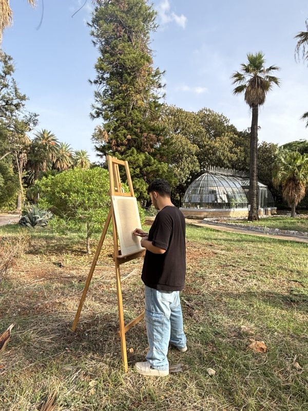 In un pomeriggio caldo, gli studenti, appena usciti da scuola, ci raggiungono al parco, esplorano curiosi nuovi spazi, i cavalletti da disegno ci aspettano dispiegati sul prato, i fogli attendono le tracce. All’interno del Parco fervono i preparativi per la nuova apertura alla cittadinanza, gli operai impilano le ultime pietre che delimitano i viali, fissano i pali dei lampioni…