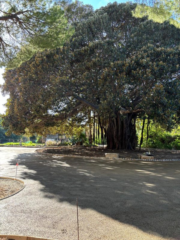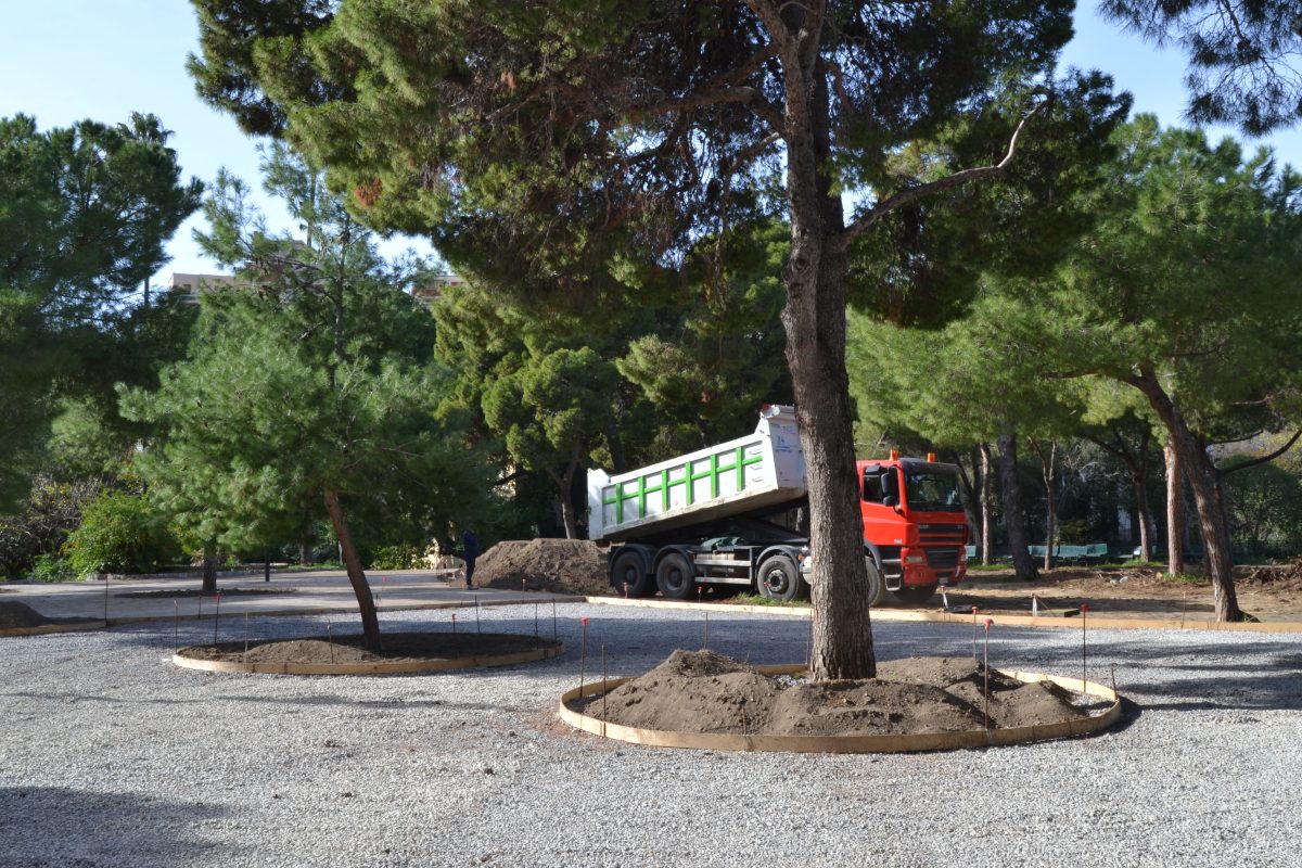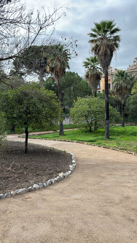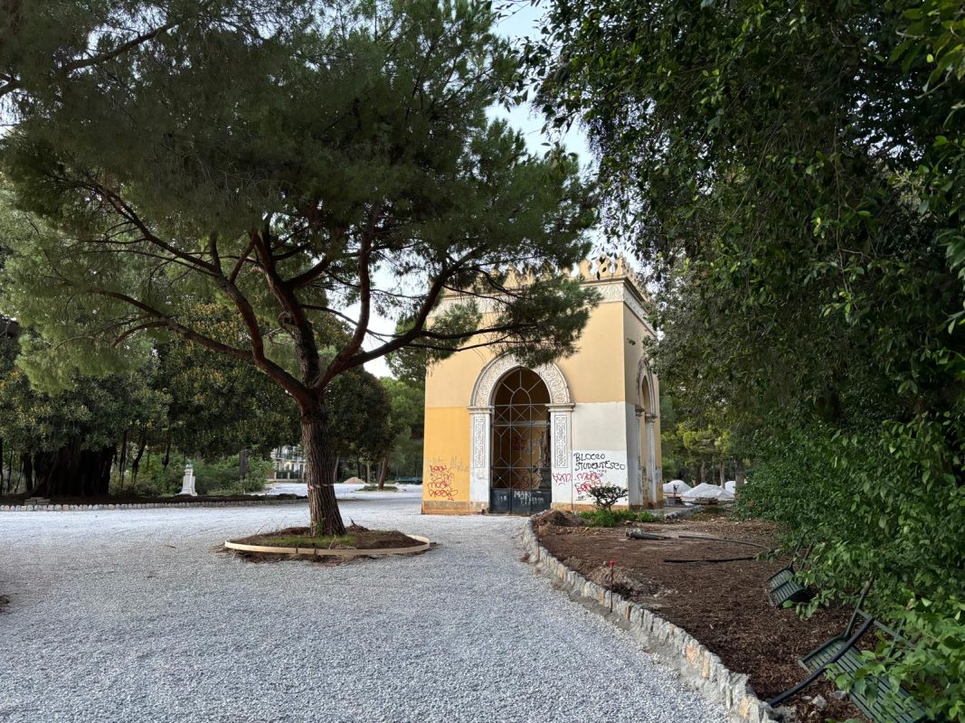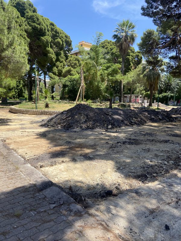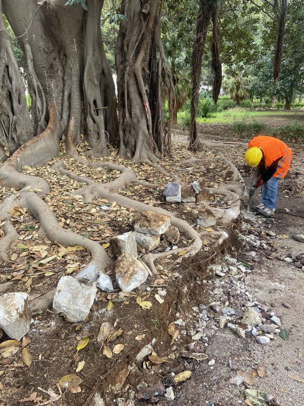 E’ stato previsto un adeguamento con materiali naturali che garantisce un sistema drenante del suolo, con il relativo smaltimento di tutti quei materiali impropriamente trovati in sito. Una conseguente riconfigurazione delle aiuole persistenti, per garantire un appropriato spazio di accrescimento delle diverse specie e la spontanea ramificazione. La Potatura e messa in sicurezza di Alberi Monumentali e Ficus. Utilizzo di un cavo in polipropilene Cobra 2T, per prevenire e monitorare il cedimento strutturale di alcune parti di alberi di Ficus. Sostituzione di bordure e inserimento di aree a prato. E’ stata prevista anche l’incremento della biodiversità del parco tramite la creazione di ambienti diversificati, con la messa a dimora di arbusti autoctoni mediterranei e la collocazione di nidi artificiali e big Hotel. Inoltre vi è un impianto di compostaggio per lo smaltimento in loco dei residui vegetali che istaura una strategia circolare nella gestione dei sitemi vegetali. L’intervento ha previsto anche il restauro conservativo di gruppi scultorei e architetture presenti all’interno del parco.