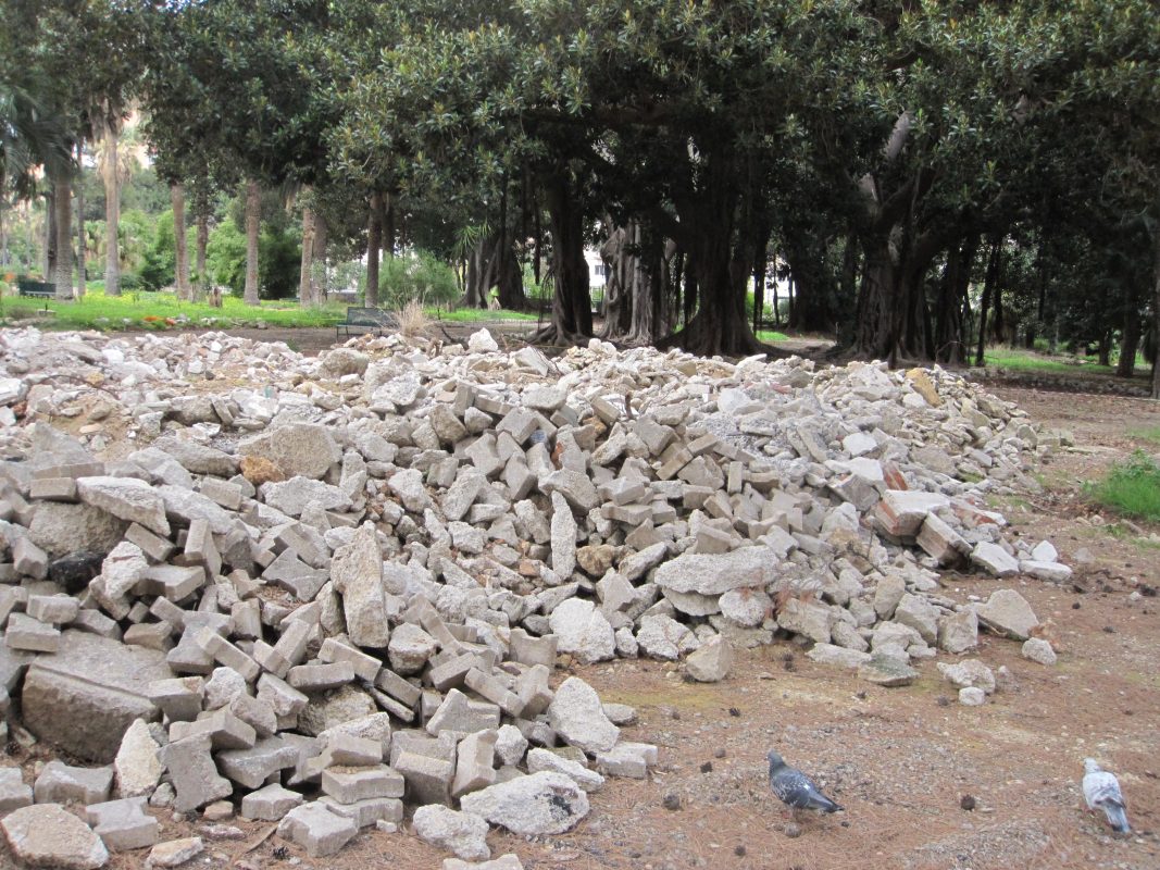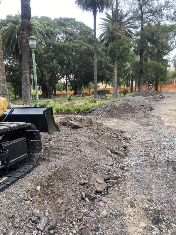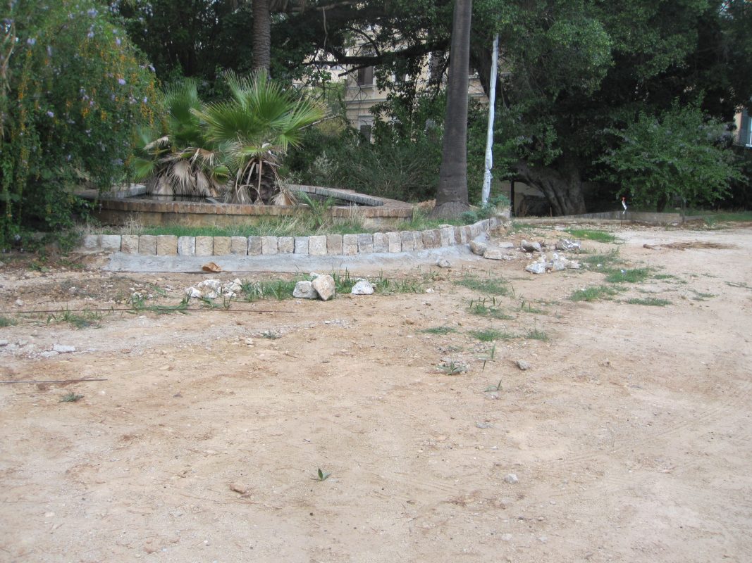 Di consistente impatto, fu la campagna di bonifica promossa negli anni 80’ del Novecento, che ha mutato notevolmente la configurazione originaria del giardino attraverso l’inserimento di nuovi materiali diversi da quelli dell’epoca, quali: uno strato di conglomerato bituminoso (tipo asfalto), la pavimentazione in autobloccanti in klinker su letto di sabbia e i blocchetti in porfido (sanpietrini) . Tale operazione di adeguamento al gusto moderno ha creato un importante impatto paesaggistico sulla estetica del giardino, e soprattutto e vegetativo sulle diverse specie arboree all’interno contenute.
