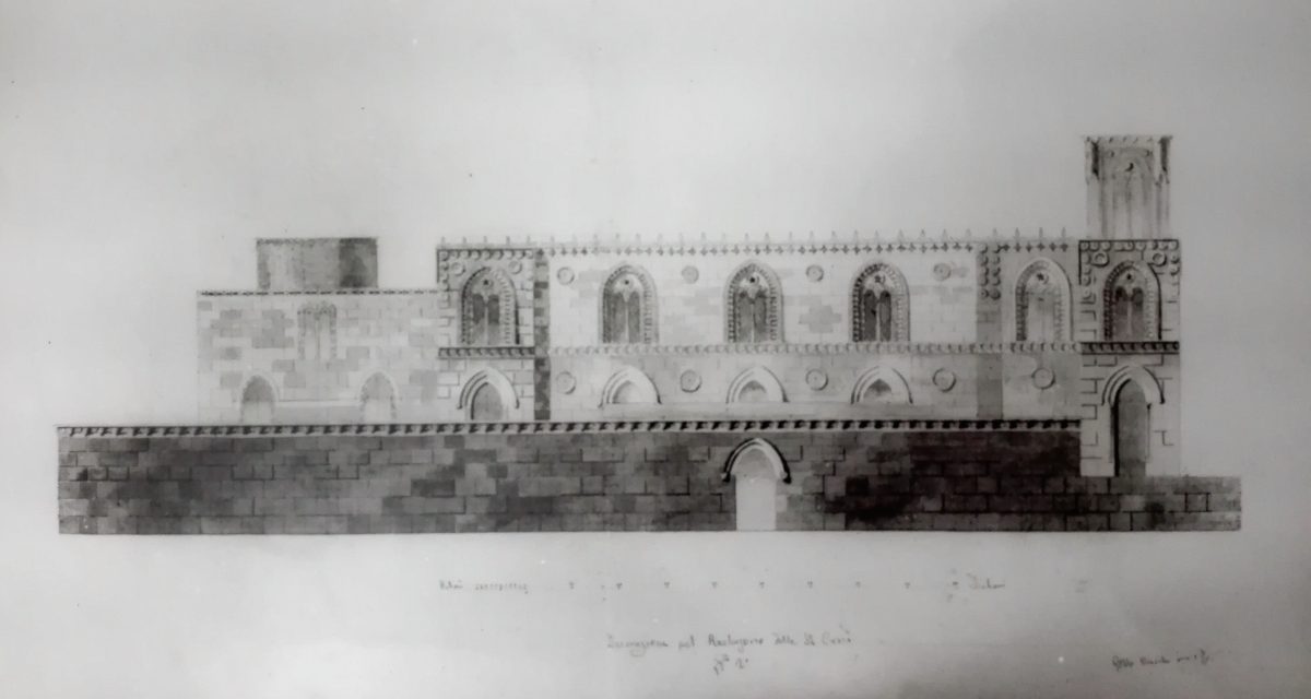 13 Il disegno è pubblicato per la prima volta in Gianni Pirrone, Michele Buffa, Eliana Mauro, Ettore Sessa, op.cit., p. 195. Si vedano i lavori a stampa pubblicati sullo studio e sugli svolgimenti dell’architettura da Giovan Battista Filippo Basile: Metodo per lo studio dei monumenti, Stamperia di M. Console, Palermo 1856; Osservazioni sugli svolgimenti della architettura odierna all’Esposizione Universale del 1878 in Parigi. Proposte di riforma nell’insegnamento relativo. Relazione di G. B. F. Basile giurato per la Classe IV, Palermo 1879; Curvatura delle linee dell’architettura antica con un metodo per lo studio dei monumenti. Epoca dorico-sicula. Studi e rilievi di G. B. F. Basile, Tip. del giornale “Lo Statuto”, Palermo 1884.