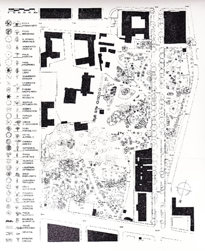 G.B.F. Basile, 1850-1851, Giardino Inglese, Palermo, impianto e flora, con il Reclusorio delle Croci e gli altri edifici del grande comparto urbano, 1964, rilievo di A. Barraja, C. Marra, V. Ugo (da G. Pirrone, Palermo e il suo verde, in «Quaderno n. 5/6/7», 1965, Istituto di Elementi di Architettura, Palermo) 30. G.B.F. Basile, 1850-1851, Giardino Inglese, Palermo, impianto e flora, con il Reclusorio delle Croci e gli altri edifici del grande comparto urbano, 1964, rilievo di A. Barraja, C. Marra, V. Ugo (da G. Pirrone, Palermo e il suo verde, in «Quaderno n. 5/6/7», 1965, Istituto di Elementi di Architettura, Palermo)