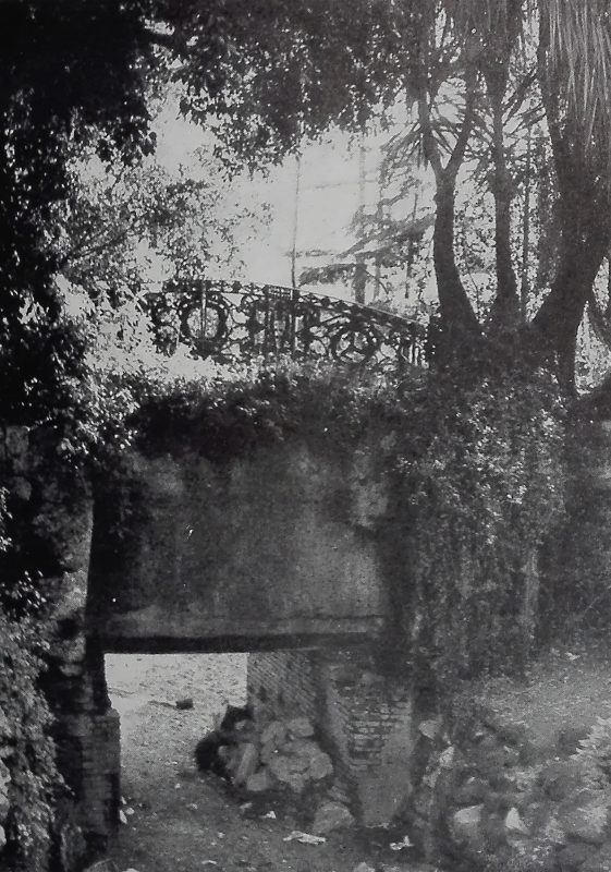 G.B.F. Basile, 1850-1851, Giardino Inglese, Palermo, ponticello di superamento di una vallata rimasto dopo le trasformazioni (da G. Pirrone, Palermo e il suo verde, in «Quaderno n. 5/6/7», 1965, Istituto di Elementi di Architettura, Palermo) 33. G.B.F. Basile, 1850-1851, Giardino Inglese, Palermo, ponticello di superamento di una vallata rimasto dopo le trasformazioni (da G. Pirrone, Palermo e il suo verde, in «Quaderno n. 5/6/7», 1965, Istituto di Elementi di Architettura, Palermo)