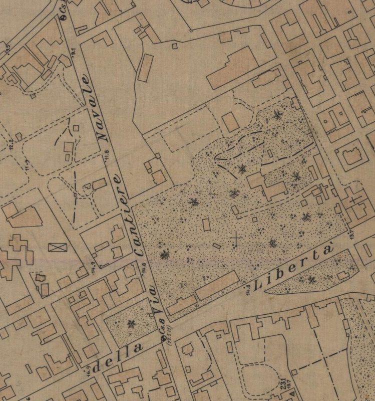 Pensata sul modello dei boulevards parigini, 9 con una carreggiata centrale arricchita da due filari di platani e due controviali carrabili ai lati ed ampi marciapiedi, la via della Libertà ebbe come traguardo fin quasi alla fine dell’Ottocento il nuovo giardino pubblico.