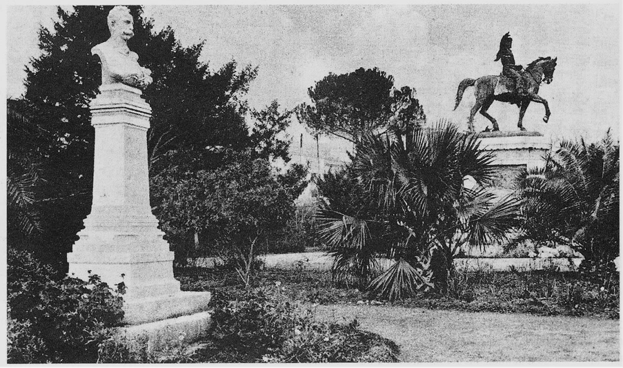 G.B.F. Basile, 1850-1851, Giardino Inglese, Palermo, veduta del Parterre dalla strada, con il monumento equestre a Giuseppe Garibaldi di V. Ragusa collocato al posto della vasca centrale nel 1892; fotografia (Coll. Di Benedetto, Biblioteca Comunale di Palermo) 36. G.B.F. Basile, 1850-1851, Giardino Inglese, Palermo, veduta del Parterre dalla strada, con il monumento equestre a Giuseppe Garibaldi di V. Ragusa collocato al posto della vasca centrale nel 1892; fotografia (Coll. Di Benedetto, Biblioteca Comunale di Palermo)