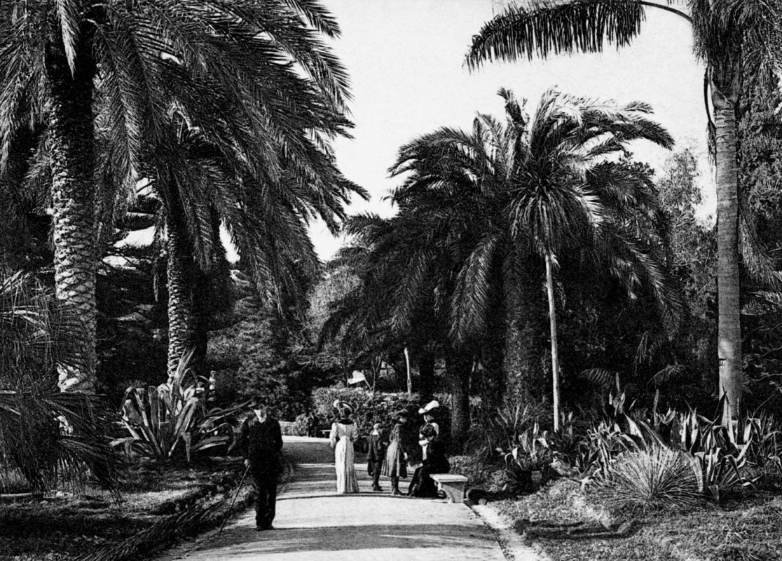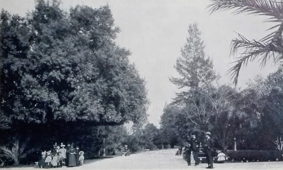 G.B.F. Basile, 1850-1851, Giardino Inglese, Palermo, il viale di accesso dalla via Duca della Verdura, in prossimità della serra, prima decade del XX secolo, cartolina (coll. privata, Palermo) 8. G.B.F. Basile, 1850-1851, Giardino Inglese, Palermo, il viale di accesso dalla via Duca della Verdura, in prossimità della serra, prima decade del XX secolo, cartolina (coll. privata, Palermo)