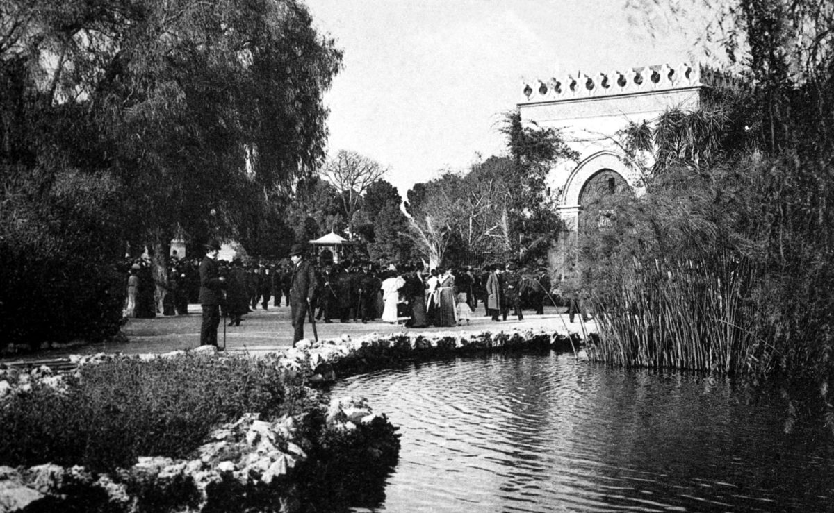 G.B.F. Basile, 1850-1851, Giardino Inglese, Palermo, veduta del lago e del Castello arabo, fotografia inizio XX secolo (coll. privata, Palermo) Lago e del Castello arabo Basile, Giardino Inglese 1850-1851 Palermo