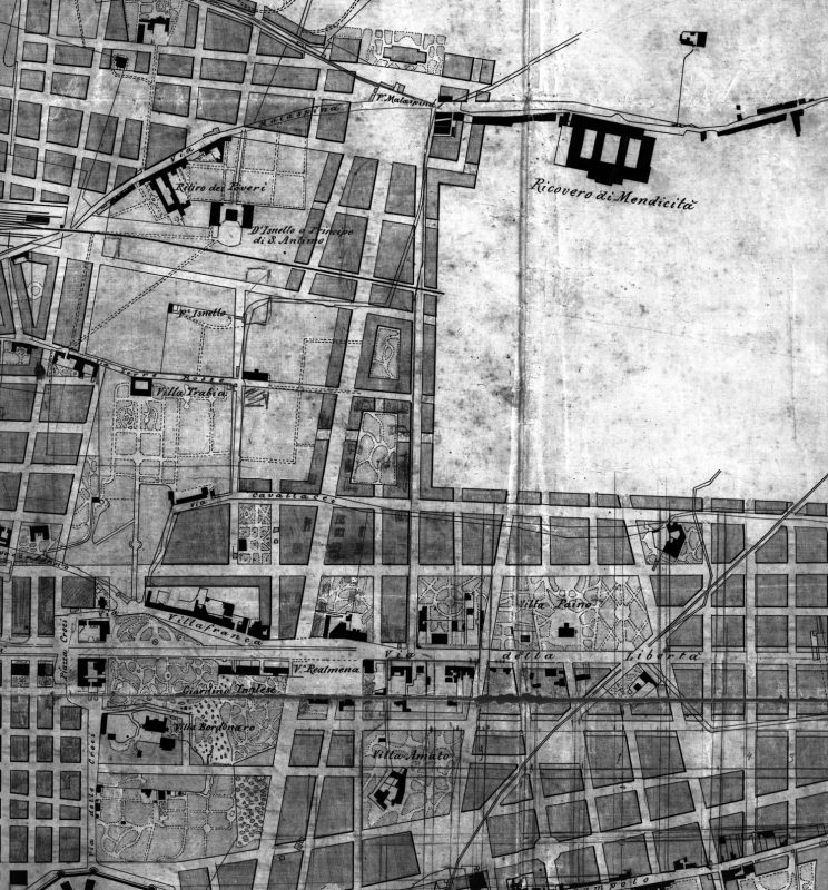 I parchi urbani contigui (Isnello, Lanza di Trabia, Bordonaro, Busacca, Amato) con il Giardino Inglese, inquadrati dal tracciato delle nuove strade del Piano Regolatore e di Risanamento e Ampliamento della Città di Palermo di F. Giarrusso, 1886 (Archivio Storico Comunale di Palermo) 27. I parchi urbani contigui (Isnello, Lanza di Trabia, Bordonaro, Busacca, Amato) con il Giardino Inglese, inquadrati dal tracciato delle nuove strade del Piano Regolatore e di Risanamento e Ampliamento della Città di Palermo di F. Giarrusso, 1886 (Archivio Storico Comunale di Palermo)